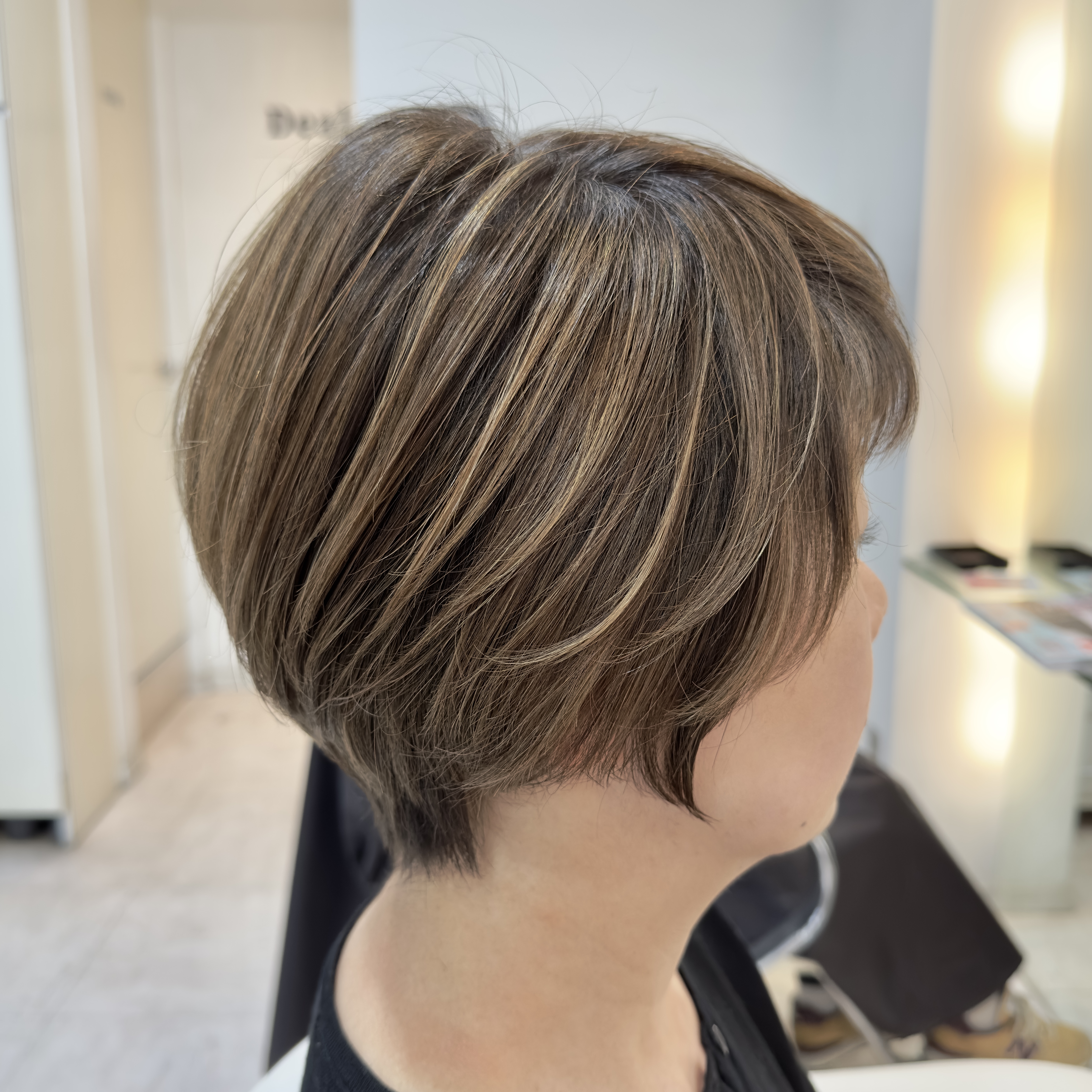 脱白髪染めハイライトとは、白髪に馴染むように細かいハイライトを全体に入れることで白髪とブレンドし、従来の白髪染めよりも目立ちにくくするカラー技法です。